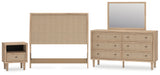 | Details | B1199-87: Made with engineered wood (MDF/particleboard/plywood) and decorative laminate for the right balance of affordability and durability, Dry, light finish with replicated oak grain and authentic touch, Decorative laminate replicates natural or man-made material surfaces with consistent color, pattern and texture, Replicated beige cane finish, ¼" bolts (not included) are needed to attach headboard to existing bed frame, Minor assembly required, B1199-91: Made with engineered wood (MDF/particleboard/plywood) and decorative laminate for the right balance of affordability and durability, Dry, light finish with replicated oak grain and authentic touch, Decorative laminate replicates natural or man-made material surfaces with consistent color, pattern and texture, Framed front and pilasters, Framed drawer fronts with replicated beige cane finish, Bronze-tone knob, Smooth-gliding drawer, Drawer interior is lined with a faux linen laminate for a clean, finished look, Built-in LED lighting on base; 3 levels of brightness; touch button control, USB and wireless charging options, Power cord included; UL Listed, Minor assembly required, simply lay flat and attach feet, B1199B1: Includes dresser and mirror, Made with engineered wood (MDF/particleboard/plywood) and decorative laminate for the right balance of affordability and durability, Dry, light finish with replicated oak grain and authentic touch, Decorative laminate replicates natural or man-made material surfaces with consistent color, pattern and texture , Dresser with framed front and pilasters, Framed drawer fronts with replicated beige cane finish, Bronze-tone knobs, 6 smooth-gliding drawers , Drawer interiors are lined with a faux linen laminate for a clean, finished look, Safety is a top priority, clothing storage units are designed to meet the most current standard for stability, ASTM F 2057 (ASTM International), Drawers extend out to accommodate maximum access to drawer interior while maintaining safety, Mirror attaches to back of dresser; can also be mounted on wall horizontally or vertically, Minor assembly required, simply lay flat and attach feet, | |