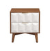 The best of mid-century modern design comes out in the Ginny Nightstand. White pyramid fronts contrast beautifully with the burnished walnut wood color for a Nightstand you will absolutely love. But not only is this the coolest looking nightstand you can find, but it is also built for service with canted cylindrical legs, English dovetail drawers and whisper-quiet smooth metal side glides.