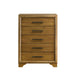The Harmony 5-Drawer Chest epitomizes the charm of transitional style. The neutral, warm, and versatile tone of the piece’s solid and engineered wood framing creates an inviting essence and simplifies pairing with other pieces. Skillfully English dovetailed drawers and protective felt lining in the top drawer mark quality, thoughtful craftsmanship, furthering this piece’s appeal. Sleek metal handles adorn each drawer front, while elegantly beveled feet provide a sturdy foundation. For a practical and refined addition to your bedroom, the Harmony 5-Drawer Chest in Walnut delivers.
