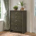 The Ilana chest features drawers in simple stature and design which offers convenient storage for any bedroom. All drawers have English dovetail with center metal glides. With small round knobs, this chest envelops your bedroom in warm notes and simple storage. The clean finish top is easy to wipe, while simple chambered feet complete a simple look.