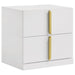 Bold in its simplicity, this two-drawer nightstand captures modern Italian influence with practical functionality. The white high gloss finish is made with eco-friendly PET thermoplastic, offering a surface that resists scratches, moisture, and heat. Vertically mounted polished gold pulls create a sculptural focal point, while two drawers provide easy-access storage beside the bed. Arrives fully assembled for instant style and utility.