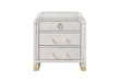The Malmo Nightstand combines style and convenience with three roomy drawers, each accented by acrylic handles with gold detailing. Rounded edges and a light beige oak veneer finish enhance its modern appeal, while gold-accented legs elevate the design with a touch of glamour. Perfect for keeping your essentials close at hand, this nightstand is both beautiful and functional.