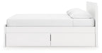 | Details | Includes panel headboard, platform bed panels, platform rails, roll slats and 4 side storage drawers, Made with engineered wood (MDF/particleboard/plywood) and decorative laminate for the right balance of affordability and durability, Solid white finish, Decorative laminate replicates natural or man-made material surfaces with consistent color, pattern and texture, 4 smooth-gliding storage drawers with ball-bearing side glides; vinyl-wrapped sides and back for durability, Bed does not require additional foundation/box spring; accommodates most zero clearance adjustable bases with the addition of a bunkie board, Mattress available, sold separately, Assembly required | |