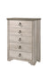 Elevate your sleeping quarters with this effortlessly elegant bedroom suite. The charming rustic-chic aesthetic is highlighted by a distressed finish and antique-style drawer pulls, offering a warm, inviting ambiance. The collection includes a stately bed frame that promises restful nights, versatile nightstands, a high chest and a spacious dresser with a coordinating mirror, each piece crafted for durability and style.