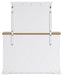 | Details | B844B2: Includes panel headboard, storage footboard, rails and roll slats, Footboard made with hardwood solids, MDF substrates and butcher block oak veneer, Headboard and rails made with hardwood solids and MDF substrates, White finish, Headboard with inset black metal barn sash, 2 drawers in footboard with fully finished interior, dovetail construction and ball-bearing side glides, Pulls with matte black finish, Bed does not require a foundation/box spring, Mattress available, sold separately, Assembly required, B844B1: Includes dresser and mirror, Made with hardwood solids, MDF substrates and butcher block oak veneer, Dresser with 2-tone finish (white finish; butcher block oak veneer with natural finish), Pulls with matte black finish, 10 spacious drawers with fully finished interiors (top drawers felt lined), dovetail construction and ball-bearing side glides , Drawers with inset picture fronts, Mirror attaches to back of dresser, | |