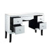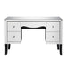 - Drawer: GLIDE Side Metal (Ext. 2/3), Dovetail French Front, Full Black Finish Inside (Felt NOT Included), Safety Stop Not Included, Manual Close, Hardware: Crystal like, Single Knob (Scalloped Center Drawer without Hardware Size: 22" x 13" x 4"H), Side Drawer Size: Side 10" x 13" x 11"H