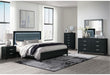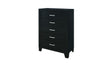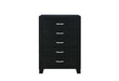 The Reid Chest from the Reid Bedroom Collection is a chic storage piece with a sleek black wood finish and glamorous hardware. This chest offers ample storage space while enhancing the modern aesthetic of your bedroom.