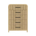 Enhance your bedroom with the bold Ridgemont 5-Drawer Chest. Finished in a versatile finish with wood grain detailing, this piece adds refined elegance to your space. Sleek, rounded corners and fluted drawer fronts create a modern yet refined aesthetic. The chest features a felt-lined top drawer, providing added protection for your essentials, while spacious drawers, accented with bold, metal pulls, offer ample storage. With clean, minimalist lines, the Ridgemont 5-Drawer Chest combines function and modern design, making it an ideal addition to your bedroom.