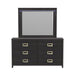 The Tobias 6-Drawer Dresser is a sleek and modern addition to your home. Designed with gently sloping horizontal slats that create uniquely rhythmic balance and robust silver drawer pulls that effortlessly draw the eye, this piece adds a sense of refinement to any space it occupies. Multiple drawers lend themselves to practical utility, while slightly beveled feet provide a firm and reliable foundation. For a piece that is sleek and stylish, the Tobias 6-Drawer Dresser delivers in quality and design.
