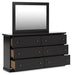 Details B138B51: Includes panel headboard/footboard and rails, Made with engineered wood (MDF/particleboard/plywood) and decorative laminate for the right balance of affordability and durability, Solid black finish, Decorative laminate replicates natural or man-made material surfaces with consistent color, pattern and texture, Foundation/box spring required, sold separately, Mattress available, sold separately, Assembly required, B138B50: Includes dresser and mirror, Made with engineered wood (MDF/particleboard/plywood) and decorative laminate for the right balance of affordability and durability , Solid black finish, Decorative laminate replicates natural or man-made material surfaces with consistent color, pattern and texture, Pewter-tone knobs, 6 smooth-gliding drawers, Mirror attaches to back of dresser; can also be mounted on wall horizontally or vertically, Minor assembly required, B138-46: Made of wood and engineered wood (MDF/particleboard), Antiqued black finish, Rubbed dark metal hardware, 5 smooth-gliding drawers, Includes tipover restraint device, Small Space Solution, Safety is a top priority, clothing storage units are designed to meet the most current standard for stability, ASTM F 2057 (ASTM International), Drawers extend out to accommodate maximum access to drawer interior while maintaining safety, B138-91: Made of engineered wood (MDF/particleboard), Pewter-tone knobs, 1 smooth-operating drawer, 1 storage cubby, Small Space Solution,