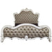 Versailles II - Eastern King Bed - Silver Synthetic Leather & Antique Platinum