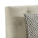 The Maddox Dining Loveseat with Five Pillows takes dining seating to the next level. This piece is fully upholstered in taupe fabric. Three taupe pillows and two grey decorative pillows with geometric designs accent this piece. Button tufting along the back adds extra flair to this already stunning piece. No need to worry about comfortability, as this sofa has foam cushion for the back and seat. Not to mention, the dark wire brush finish of the legs gives great contrast with the taupe fabric. This loveseat seats two comfortably. Add this loveseat to the dining table in this collection for a perfect pairing.