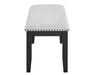 A fresh take on a traditional silhouette makes this group a great addition to your dining space. A faux marble top provides an elegant look while being easy to care for. The trestle base is updated in a contemporary charcoal finish. The upholstered dining chairs feature gently sloped wings and a nail head trim on the back. Button tufting accents the dining bench.