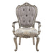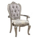 Introducing our Ariadne armchairs that are sure to captivate you with their intricate scrollwork and luxurious antique platinum finish. These stunning dining chairs have beautifully crafted scroll legs that make a grand statement on their own. Adorned with a subtle crown on the top of the frame and finished with crystal-like buttons on the backrest for visual appeal. The foam seat cushion creates the perfect set for your dinner guests to enjoy a nice meal.