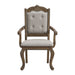The Madison Park Arm Chair epitomizes elegance with its rich walnut finish, infusing warmth and sophistication into any dining space. Ornate carvings throughout the chair exude timeless charm, while silver nailhead trim on the chair back adds refined elegance and a touch of luxury. Carved arms and legs showcase intricate beauty, enhancing its classic appeal. Upholstered in tufted beige fabric, the chair offers a plush and inviting feel, ensuring comfort during meals and gatherings. With its traditional design that never goes out of style, the Madison Park Side Chair is a perfect blend of timeless beauty and functional comfort for your dining room.