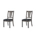 The Nathan Dining Side Chair Set w/ Upholstered Seats is the perfect addition to your Nathan Dining Table! This chair set includes two dining room chairs in a cool, gray oak finish. The fan-back style of the chair adds an unique look to this already stunning set. The foam cushion seat is upholstered in a black, faux leather fabric; creating the perfect rustic farmhouse look. Pair your Nathan Dining Chairs with the Nathan Dining Table to complete your dining room.