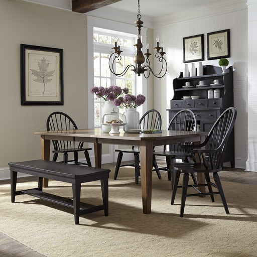 Wow family and friends with the Hearthstone Ridge rectangular table set. Crafted of rubberwood solids and oak veneers, this set features a tobacco ...