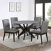 Inspired by mid-20th Century Modern designs, the Amy 5-piece dining set pairs a striking faux-marble table with plush moonlight gray faux-leather chairs in a cozy yet elegant ensemble. Marrying retro aesthetics with modern flair, the table boasts sleek lines, an ebony-finished base, and a convincingly authentic faux-marble top. The Amy Side Chairs, built for durability with corner-blocked seats and sturdy legs, also prioritize comfort with foam and memory foam cushioning. Perfect for intimate gatherings of four, this set ensures each dining experience remains memorable.