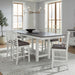 Feel at home with the Brook Bay optional five-piece trestle table set. Crafted with excellence using rubberwood solids and mindy veneers, this set features a two-tone and Textured finish and consists of the trestle table and four upholstered slat back side chairs. The trestle table includes two 12” refractory leaves on the ends, supported by square block legs. The center trestle can double as a bottom shelf for extra storage or display items. The chairs offer a seat that is upholstered in 100% polyester Grey Linen fabric. The tapered block legs feature nylon chair glides to protect your flooring. Feel comfortable and elegant at the same time with the Brook Bay optional five-piece trestle table set.