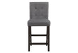 Introducing the D4052 Bar Table & Bar Stools from Global Furniture USA. This exquisite set showcases a captivating blend of dark stained wood and a luminous faux marble top, adding a touch of sophistication to any space. The bar stools, elegantly finished in a stylish grey fabric, provide both comfort and style.