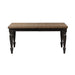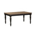 Reinvent your style with the Harvest Home rectangular table set. Crafted of rubberwood solids with knotty oak veneers, this set features a chalkboard and barley brown finish with saw cut hewing.