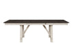 Create a warm and inviting dining space with this beautifully designed set that perfectly blends rustic charm with modern elegance. The two-tone finish features a striking tabletop with dual draw leaves contrasted with a soft, distressed base, adding a farmhouse-inspired touch to any home. The trestle-style table provides a sturdy foundation, making it ideal for both casual family meals and festive gatherings. Complementing the table, the matching chairs and bench feature plush upholstered seating for superior comfort, while the slatted chair backs enhance the overall aesthetic. Whether you're hosting or enjoying everyday dining, this set delivers style, durability, and a welcoming ambiance.