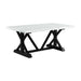 The Tuscany 5PC Dining Set is going to look gorgeous in your home! This set includes a table and four side chairs. This rectangular table features a white, natural marble table top, adding instant style to your dining room. The brown trestle base also has its own flair to offer, that beautifully complements the table top. The standard height side chairs, are upholstered in a transitional, charcoal fabric. Chrome nail head trim outlines the edges of the chairs, instantly adding extra flair to these already stylish chairs. The foam cushion seat and back will keep you plenty comfy through even the longest of dinners. Enjoy every meal at the table and add the Tuscany Dining Set to your home today!