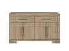 Napa presents contemporary styling in a Server that adds display and space to any living area. This functional Server has a warm dusky finish that is perfect for home environments. Two shelves for wine storage are accented with a glass top so you can show off your collection and the piece comes along with two additional drawers and two glass front doors for additional storage and display. The sleek modern lines are accented with a relaxed silhouette that allows it to be dressed up or down to your preference.