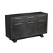 Elevate your dining space with the Transcend Server, where bold design meets functional elegance. Rich charcoal tones beautifully enhance the intricate woodgrain, adding warmth and depth to the space. Crafted from a durable wood frame with a stunning oak veneer, the server features eye-catching chevron and herringbone patterns for a striking visual statement. Sleek metal handles provide a modern accent, allowing for easy access to spacious storage, while brown felt-lined drawers protect delicate items, adding a luxurious touch. The Transcend Server is the perfect blend of style and functionality, designed to complement any contemporary dining room.