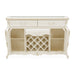 A beautiful must-have for any classic home, the Lavelle Sideboard in Classic Pearl is gracefully shaped and adorned with molding accents and antique hardware. Two doors, three drawers and an open wine rack provide plenty of space for all of your storage needs.