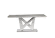 For a stylish and dramatic impression seek no further than this grey faux marble dining table. Elegant in style this ultra contemporary dining table will be the talk of your dining space. Design elements are not in short supply with this table, featuring an architectural pedestal base, stainless steel bottom plate, and a spacious top making this table a stylish and smart choice for your dining space.
