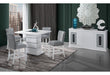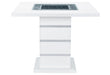 This bar table is a showcase example of how charm and a touch of elegance can dramatically change the look of your eating area. This table includes glitter detailing style elements with a sturdy construction and a high gloss finish with a clear glass inlay to round off the look. Constructed of MDF, Glass and Acrylic this dining table makes a bold statement. Finished in a White and Silver with a center glass, square shape and pedestal base you will have more than enough room to entertain and enjoy your dining experience.