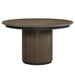 The Burlington 52-inch Round Table in mocha forms a centerpiece that marries elegance with style. The table features a sturdy circular base, providing a strong foundation while offering ample clearance for chairs. Its unique polygonal circle design is highlighted by a striking black accent on the apron and base that seamlessly elevates the ebony finish to create a cohesive and luxurious look. Designed to comfortably seat up to six people, the Burlington Table is ideal for fostering a cozy and intimate atmosphere, perfect for close-knit gatherings and engaging conversations.