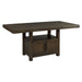 The Colorado Counter height dining collection, brings boldness to a casual dining scheme. With a trestle base design and a deep finish, this everyday counter height table serves as a perfect gathering space. Enjoy an attractive chevron design on its table top while accommodating deep chairs and extra storage. The inventive table design creates options for positioning to suite your needs. The slat back design of the chair and the black hardware finishes, reflect a design-forward blend of modern and farmhouse concept.