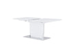 Enjoy cutting-edge and minimalist style that's as eye-catching as it is practical for your contemporary dining space. A high gloss white finish with brushed stainless steel accents is sleek and on-trend. The glass top over white high gloss wood extends from 63in to 87in to accommodate all of your guests, and the self storing butterfly leaf hides seamlessly just below the tabletop when not in use.