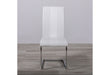 Perfect for your kitchen or breakfast nook, this two-toned dining chair will transform your room and add comfort and charm. This chair is upholstered in tones of white faux leather (PU) and fabric, providing an eye-catching and modern twist to traditional kitchen seating. Decorating possibilities are endless with the attractive tones of this chair. Additional design elements include a sleek style silver toned metal base and ample padding, continuing the delightful look and comfy feel of this seating. Quality craftsmanship in every facet of production ensures durability and long-lasting wear. For a stylish and modern take on kitchen or dining room furnishings, this chair is a can't miss choice in comfortable seating.