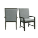 The Donovan Standard Height Arm Chair Set in going to look fantastic in your home! This set comes with two, dining room chairs. These chairs are upholstered in a gray fabric, that pairs beautifully with the black, wire brush finish on the legs and arms. Chrome nail head trim, outlines the edges of the chairs, instantly adding extra flair to this already stylish pair. The solid chair back is classic in design and will provide hours of comfort thanks to its foam cushioning. Add these stunning chairs to your dining table today for a look you'll love day after day!