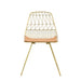 Modern elegance combined with contemporary design. This Fantasia side chair is stylish and durable. With its metal and faux leather craftsmanship, this piece will make a classy companion to any table. With its whiskey faux leather and gold finish, it will sure to provide the long-lasting comfort you are longing for.