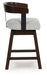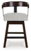 Details Made with solid wood frame, Dry, smoky dark brown oak finish, Polyester upholstery, Foam cushioned seat, 360-degree swivel, Assembly required