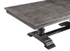 Classic styling with a modern twist, Hutchins offers large scale dining in a unique package. The 95-inch table expands from 59 to 95 inches with the addition of two 18-inch leaves to seat ten comfortably. The combination of turned legs, clean design and wave ladder back chairs gives the collection a look that is sure to be an instant classic. The dusty finish offers neutral styling and can be paired with comfortable upholstered seat Side Chairs and Bench for a dining experience for all your family and friends.