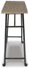 Delight in the effortless two-tone look of this long counter table. Dark iron-tone metal and distressed brown wood pair for a rustic look with modern sensibility. This charming piece is great for small spaces, easily tucking against a wall or the back of a sofa.