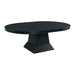 The Maddox Dining Table will be the center of attention for your dining room. This amazing table can accommodate a small or large dinner party with two 12" removable leaves. What a transformation for just one table! The dark oak finish flows throughout the entire piece, giving it a contemporary look. The square pedestal table base provides amazing stability for the oval table top. The Maddox Dining Collection also offers upholstered side chairs, corner, loveseat and dining sofa for multiple seating options.