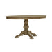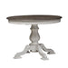 Gather the family together for dinner around the Magnolia Manor pedestal table. A 42" round is perfect for small spaces or add in the 18" leaf to expand the table to an oval for larger crowds. Crafted of poplar solids and white oak veneers the pedestal table features a fancy face top finished in a weathered brown. The faceted turned base is finished in an antique white with heavy chipping that is accented by splayed feet. Perfect for any decor from farmhouse to cottage living.