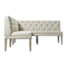 The Peyton Sectional provides the upmost space and comfort for the entire family. Built of sturdy acacia, rubberwood, and supported by stylish tapered legs. The beautiful deep button tufting and structured silhouette adds immense visual interest to this piece. Easily coordinates with transitional to farmhouse to beach home styles. Designed to be placed in the corner of your dining room or in kitchen as a cozy breakfast nook. The Elements Peyton is the perfect piece for family brunches on Sunday mornings!