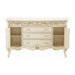 Traditional form and function combine to bring you this regally opulent server that will accentuate any room. The Platine de Royale Sideboard offers two cabinets, six drawers, a velvet lined caddy and top drawers accented with antique platinum leaf finished designs.