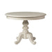 Be distinctively different with the Summer House pedestal table set. Crafted of poplar and rubberwood solids, this set features a finish. The table features step molding and includes a 12” removable leaf, all anchored by a decorative turned pedestal base that flows into shaped splayed feet. The chairs have a decorative splat back, a padded upholstered seat in linen, and beautifully round turned legs with nylon chair glides to protect your flooring. With cottage design always in fashion, the Summer House collection would make a great addition to any home.