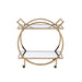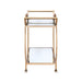 - Serving Cart, Storage: Open Compartment (Mirrored Shelf), Top: _, Metal Frame: Champagne Finish, Caster Wheels