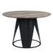 This Zudora dining table offers a strong character that combines technical innovation in surface, form, and material. This table combines a contemporary lifestyle with functional necessities in a timeless and masterful fashion. Contrasting materials stand out against one another for a complementary touch. The tabletop is finished in an antique oak, while the base is finished in a black hue.