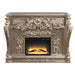 Enhance your estate with the LED electric Zabrina fireplace mantel—regal looking and alluring with its antique silver finish and shell and floral ornamental moldings. Bring a subtle glow and warmth to any room. The faux wooden logs give off a realistic fire appearance. The fireplace functions include: Adjustable Temperature, Timer, & Light Only.