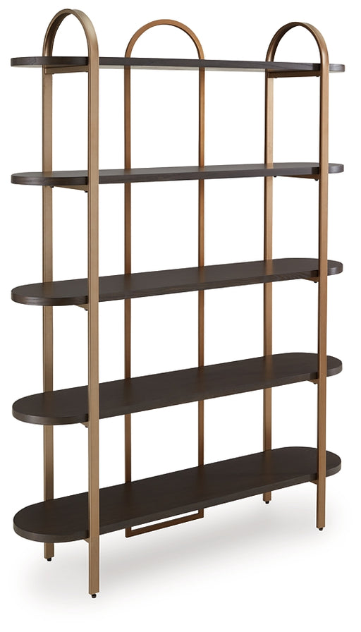Signature Design by Ashley®Classic design effortlessly blends with modern functionality in this elegant bookcase. Its antiqued bronze-tone finish adds a touch of warmth and s...